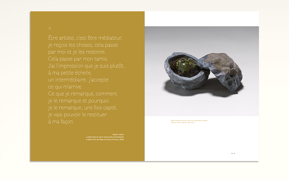 Parce que sa démarche artistique correspond parfaitement aux ambitions de ce nouveau cycle, pour sa première édition, la Conservation départementale du Gard s’est tournée vers Agathe Larpent. Artiste céramiste, originaire de Paris, elle travaille entre la capitale et Thoard dans les Alpes-de-Haute-Provence.