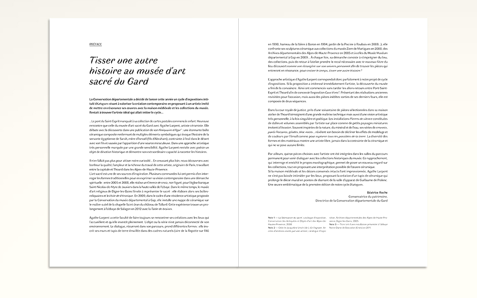 Un nouveau cycle d’expositions temporaires Dialogues, est inventé au musée d’art sacré du Gard, il vise à valoriser la création contemporaine et renouveler notre regard sur le musée. Il consiste à présenter une sélection de pièces représentatives du parcours d’un artiste tout en l’invitant à mettre en résonance ses œuvres avec la maison médiévale et les collections.