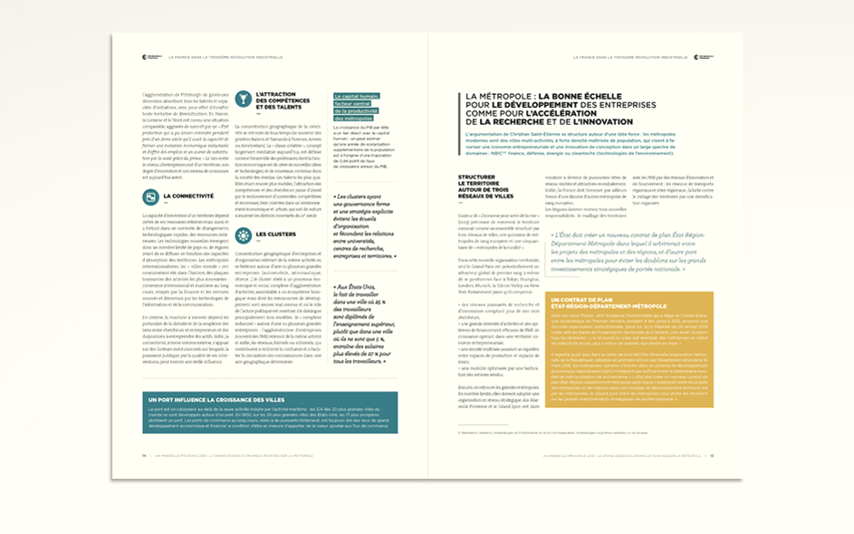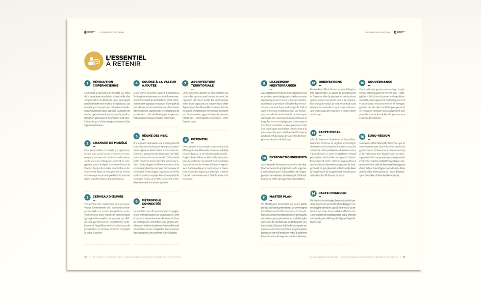 Elle s’articule en deux axes : La métropole Aix-Marseille-Provence face à la troisième révolution industrielle et à la métropolisation de la croissance : forces et faiblesses. Quelle ambition pour la métropole Aix-Marseille-Provence ?