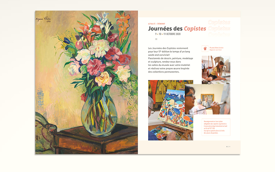 Jusqu’en 2022, la programmation culturelle de la conservation des musées du Gard était très riche et diversifiée. La conservation c’était un musée départemental situé à Pont-Saint-Esprit, deux musées à Bagnols-sur-Cèze et un musée à Villeneuve-les-Avignon. Chaque année, 4 à 6 expositions temporaires, des événements nationaux (journées du patrimoine, nuits des musées, nuits de la lecture, …), des ateliers, des conférences toutes les semaines, un cycle en biennale, des jeux et activités découvertes pour les enfants de tous âges, des visites thématiques, des coopérations diverses… La conservation ne disposait jusque là d’aucun support transversal permettant d’avoir une vue globale sur la totalité de sa programmation. Cette nouvelle brochure semestrielle, véritable outil de développement du territoire, aura le mérite de mettre en avant le travail des équipes du département autant que d’attirer encore plus de visiteurs tout en fidélisant les habitués.
