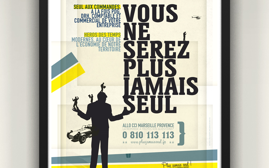 La CCIMP a mis en place un dispositif complet à destination des dirigeants de TPE. Un N° d’appel aux amplitudes larges,une base de données renouvelée, un site Internet boîte à outils et une équipe dédiée, une offre riche de formations, de plan d’accompagnement, de rendez-vous. Avec la CCIMP vous ne serez plus jamais seul ! Affiches, carte postale, carte membre, stylo, stickers, banners, bloc note, voiture miniature… Une création inspirée de le série The Prisoner et de sa Super 7.